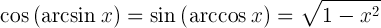 | Complementary angles | arcsin x = π/2 - arccos x = 90° - arccos x |